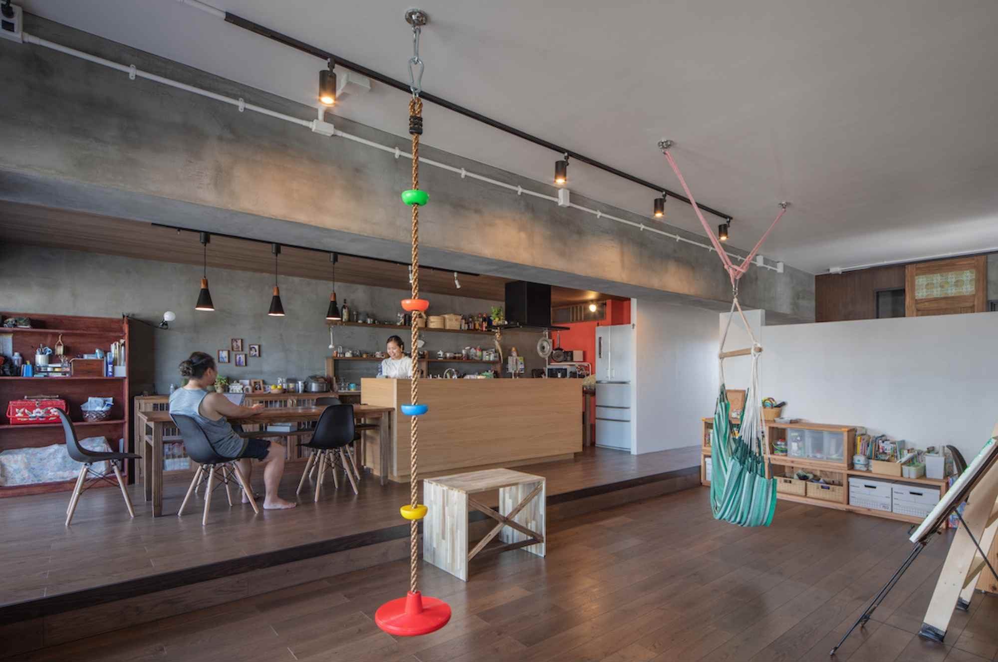 郊外の木造住宅での暮らしに憧れを持ちつつ、親から譲り受けた市街地の高層マンションの一室で楽しい暮らしを送りたい、という相談から、このプロジェクトは始まりました。