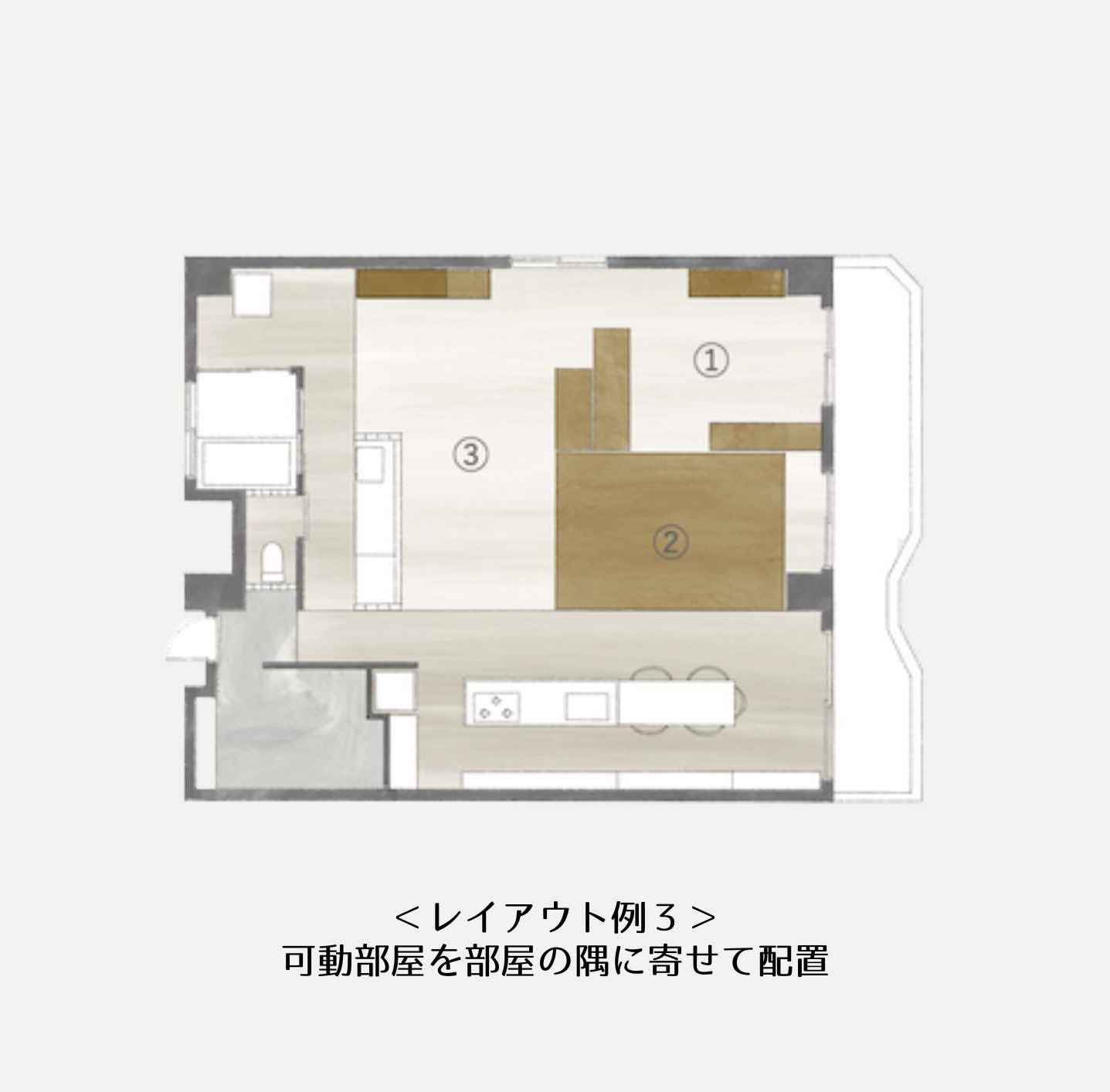 既存の壁は取り払い、コンクリートの部屋の中に3坪の木造の箱を置きました。箱の開口部は空間に合わせて変えることができ、箱自体の移動も可能です。生活や季節に合わせた、可変性のある住まいを創ることができます。