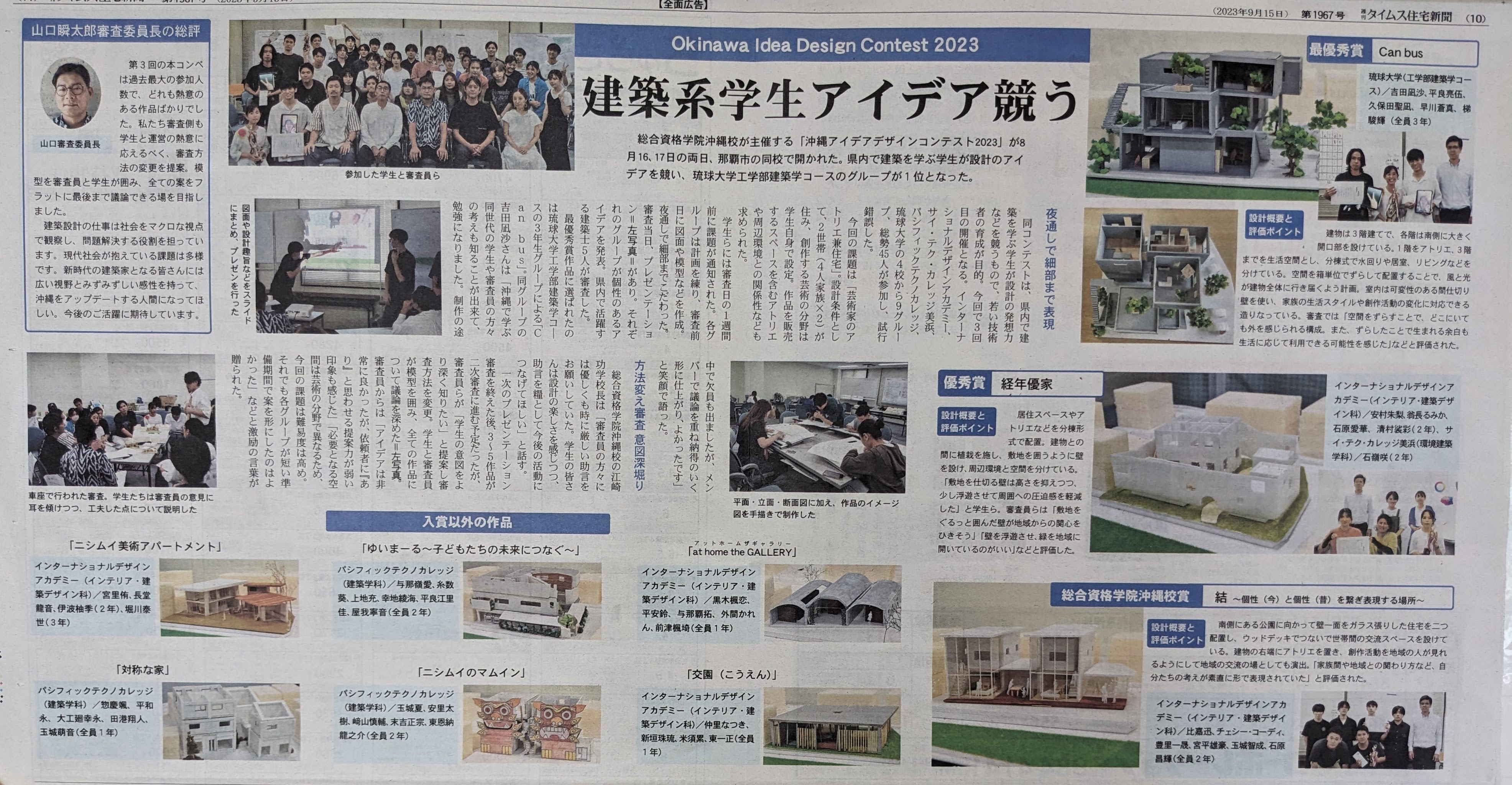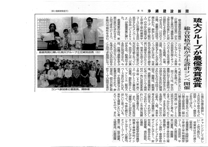 2023年8月16、17日に総合資格学院沖縄校が主催する「沖縄アイデアデザインコンテスト2023」が行われ審査員として松田が参加いたしました。