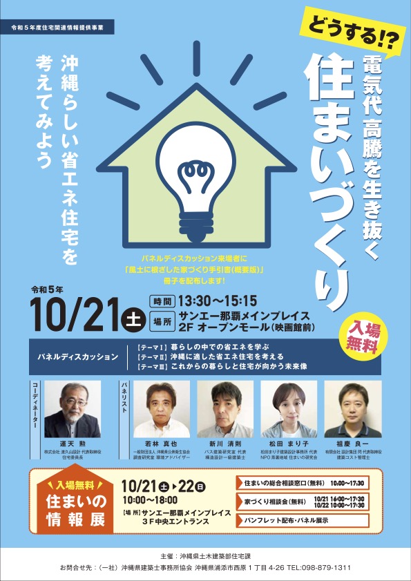【情報展】10月27日(日)に、沖縄県立武道館にて、沖縄県土木建築部住宅課が主催する「住まいの情報展」が開催され、松田がパネリストとして参加します。ぜひご来場ください。